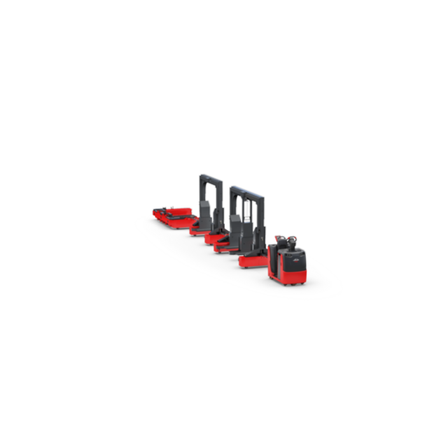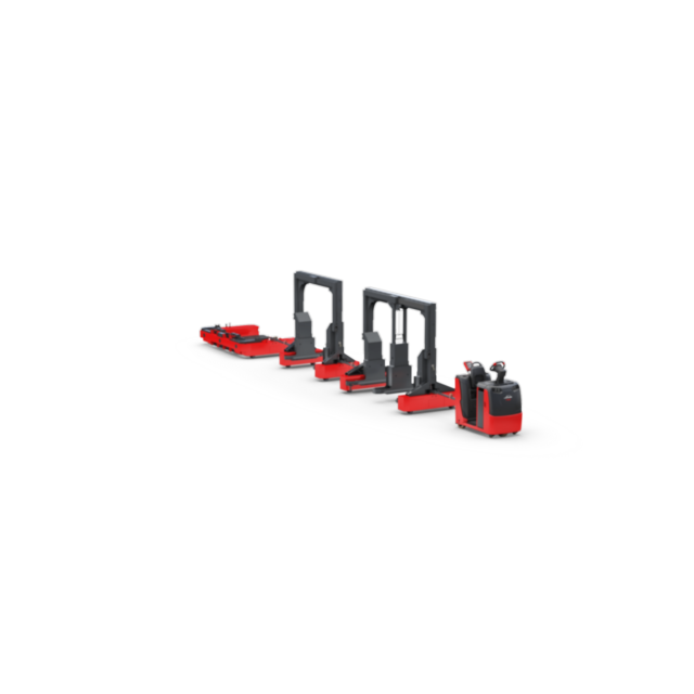 Linde’s LT10 – LT20 logistic trains are an efficient solution for bundling horizontal transports of large quantities of materials over longer distances, for example from a warehouse to several production lines. The three frame variants, C-Frames, B-Frames, and B-Frames with middle support can hold up to 2,000 kilograms, 1,000 kilograms, and 1,600 kilograms respectively, and offer the flexibility to combine different loads on one train. Whether pallets, grid boxes or small load carriers, transport goods of up to 2,000 kilograms per frame are maneuvered quickly, nimbly and with stability, even through narrow aisles and tight curves. The frames can be towed by either a manual or an automated tractor. Linde supports its customers with an optional tugger train guiding system for integration into digitally controlled processes and to ensure efficient use of the trains.