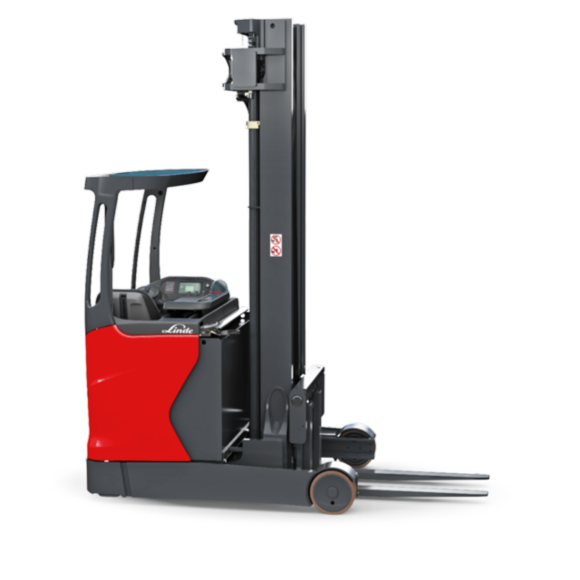 R20 – R25 F four-way reach trucks are specifically designed for transporting particularly long items in narrow aisles. They are not only able to move forwards and backwards, but can also move sideways in both directions. Their adjustable prongs, which can be set to a width of up to two meters, also allow extra-long loads to be transported and stacked. With lift heights of up to nine and a half meters, they are also suitable for use in high rack warehouses. R20 – R25 F-series trucks can even easily handle high loads of up to 2,500 kg. This makes them ideal for long and heavy loads, such as steel girders and wooden beams for the building and timber industry as well as for use on production equipment and in the logistics sector.